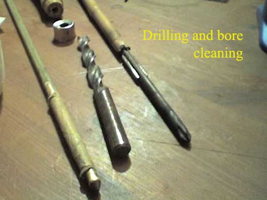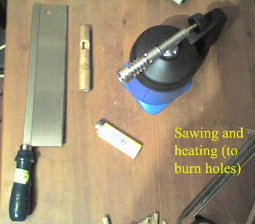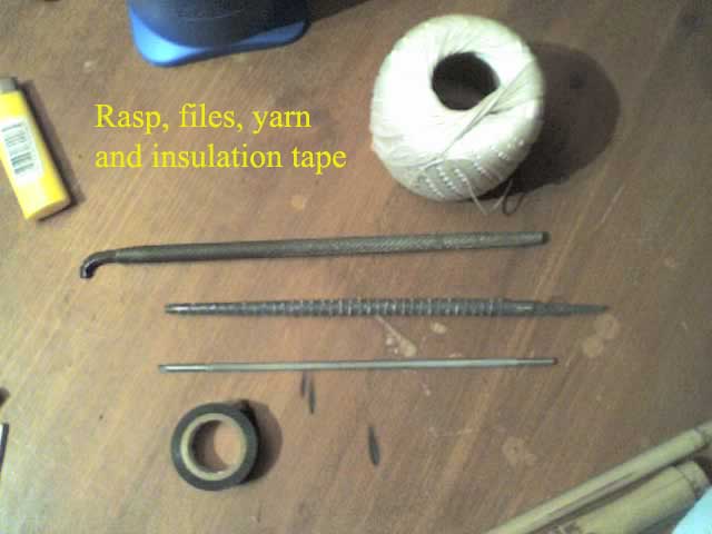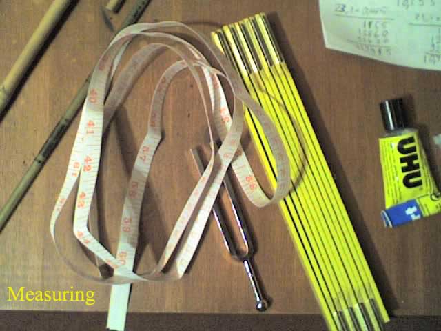 Bamboo Flutes In August 2010, I started making bamboo flutes. My initial goal was to build a Bansuri, which is a traditional Indian bamboo flute with a beautiful sound and tuned to just intonation. In the meantime, I revised the goal, I will make bamboo flutes of any type (which, in fact, is much easier). Right now just a few images of my first three flutes (there is one more, but it isn't quite finished) and the tools I use. More information will be added later. Top: Bansuri prototype (b a g f e d c), most recent flute, bansuri-like hole position, only three holes here